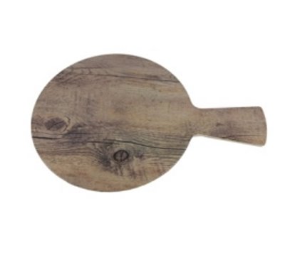 Display Tray, 9" dia. x 1/2" H, Round, w/Handle, Melamine w/Faux Driftwood, Fo Bwa