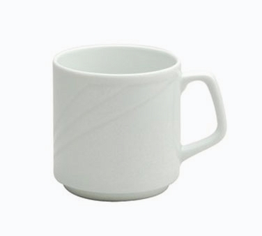 Mug, 10 oz, 4 3/4", Stackable, Embossed, Bright White, Porcelain, Buffalo, Arcadia Undecorated