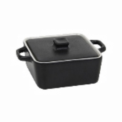 Ovenware Dish, 8 oz, 5 1/2" x 4" x 2" H, O.A., Rectangular, w/Lid, Heat Resistant Up To 500 degrees F, Vitrified Stoneware, Black, Kiln