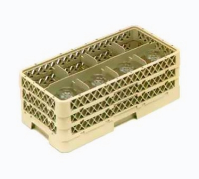 Rack-Master Dishwasher Rack, Stemware, Half-Size, 8 Comp.comp. Size 4 1/8" x 4 7/8", w/4 Extender, 8 1/4" Inside H, 10" x 19 3/4" x 9 1/16", Snap-Fit, Co-Polymer Plastic, Stackable, Handle on All 4 Sides, Reinforced Index Strips, Beige