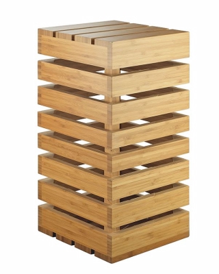 Display Crate Tower, 9" W x 9" D x 18" H, Square, One Side of Slotted Openings, One Closed Side, Can Be Flipped & Used as a Crate Basket, Bamboo