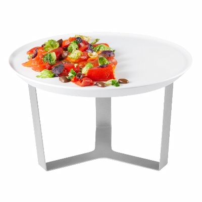 Rosseto, Round Tray & Riser Set, White Melamine Tray, S/S Stand, 13 5/16" dia. x 7"