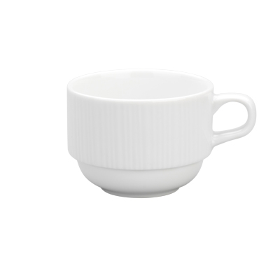 Stacking Coffee Cup, 5.75 oz, 3 1/8" dia. x 2 3/8"H, Porcelain, Dishwasher Safe, Embossed Alani