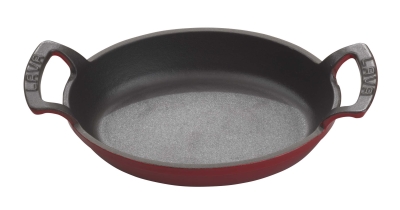 Oval Dish, 19 oz, 7 7/8"L x 5 7/8"W, 10" w/Handles, Red Exterior, Cast Iron