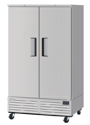 Kintera Refrigerator, Reach-In, Two Section, 42.27 cu ft Capacity, 51 3/4"W x 30 3/4"D x 78"H (Does Not Include Caster Height), Bottom Mount Self-Contained Refrigeration, (2) S/S Solid Doors w/ Locks, (6) Adjustable PE Coated Wire Shelves, Digital Temper