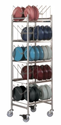 Drying & Storage Rack, S/S, For Smart-Therm Bases, Holds 180 Induction Bases, 1" Square S/S Tubing Frame Construction, Welded Tray Slides, 5" Casters (2 with brakes) (IBDRS/180)