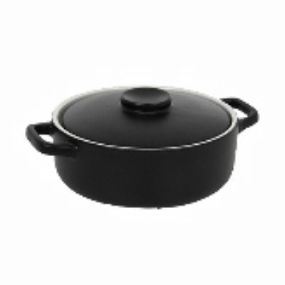 Ovenware Dish, 21 oz, 8" x 6 1/4" x 2 1/4" H, O.A., Round, w/Lid, Heat Resistant Up To 500 degrees F, Vitrified Stoneware, Black, Kiln