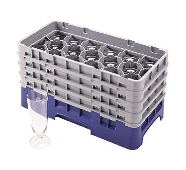 Cambro Camrack Glass Rack, w/ 6 Extenders, Half Size, 10" x 19 3/4" x 13 3/4", 17 Compartments, Navy Blue