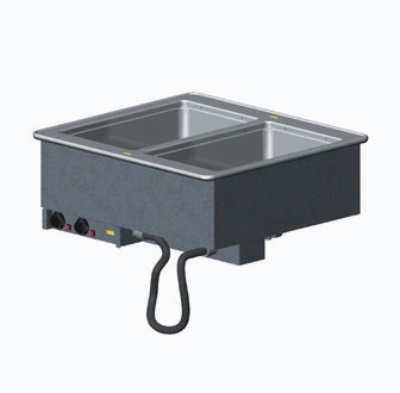 2 Well Hot Modular Drop-In w/Infinite Controls and Manifold Drains, Drip-Free Flange, 6 3/8" Deep Wells Operate Moist/Dry, Dial Controls, 625w Per Well, 208v/60/1 ph, 6.0 Mode Amps, Nema 6-15p, O/A 28 1/4" x 26"