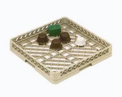 Rack-Master Dishwasher Rack, Low Profile, Open Bottom and Sidewalls, Full Size, 2 1/4" Inside H, w/1 Open Extender, Handles on All Four Sides, Beige Co-Polymer Plastic, Double Wall Construction, Snap-Fit Extenders/Construction