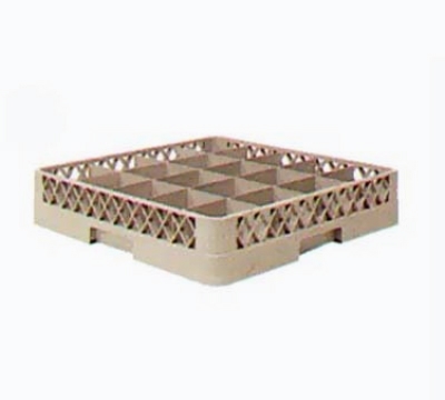 Rack-Master Dishwasher Stock Rack, Cup, 20 Comp., Comp. Size 3 17/32" x 4 7/16", Open End, Bottom and Sidewalls, Full Size, 3 1/4" Inside H, Handles on All 4 Sides, Beige Co-Polymer Plastic, Double Wall Construction, Snap-Fit Extenders