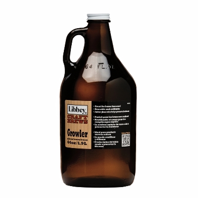 Libbey, Growler, w/ White Lid, Plastisol Rubber Liner, Amber, 64 oz